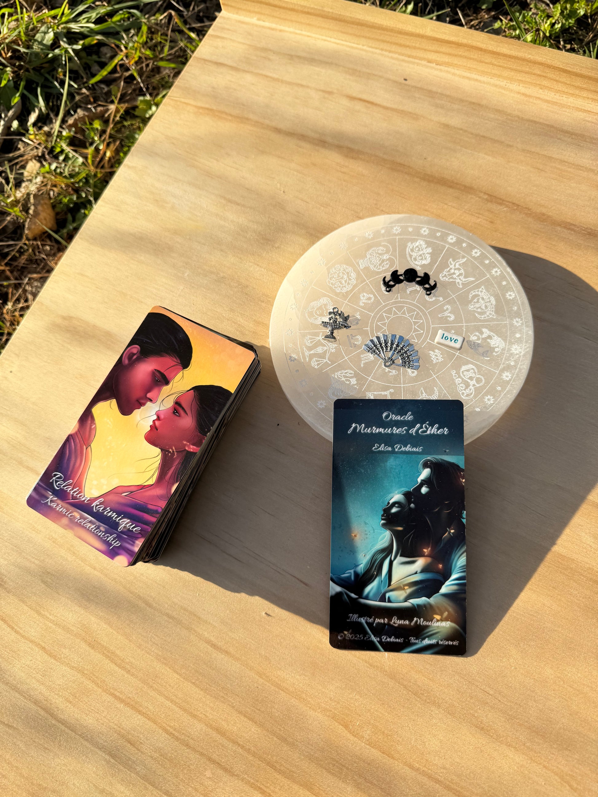 Que vous soyez novice ou habitué des oracles, Murmures d’Éther est l’outil idéal pour celles et ceux qui cherchent à voir plus clair dans leurs relations et à avancer avec confiance sur leur chemin. Compact et raffiné, il est pensé pour être transporté partout avec vous, prêt à vous accompagner dans vos questionnements du quotidien comme dans vos grands moments de vie.